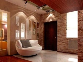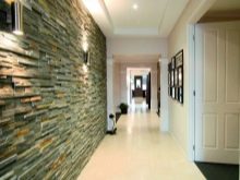 - أين يوجد التصميم الداخلي الأبسط والأكثر اقتضابًا في الشقة؟ ربما يكون هذا ممرًا أو رواقًا يؤدي إلى السكن الرئيسي. غالبًا لا توجد نوافذ في الممرات ، لذلك تبدو هذه الغرفة أحيانًا مظلمة وضيقة. لتصميم مثل هذه المساحات ، فإن خلفيات الحجر أحادية اللون ذات اللون الفاتح مع غبار من الحجر الرملي أو رقائق الكوارتز مناسبة ، ويمكن لصق البلاط مع تقليد الحجر حول الأبواب. بفضل هذه القرارات الجريئة ، حتى التصميم الداخلي المقتضب سوف يتحول إلى تصميم عصري وأنيق..