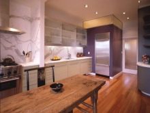 - تبدو التشطيبات المصنوعة من الرخام الطبيعي أو الجرانيت جيدة في المطبخ والحمام. في المساحات الكبيرة ، يتم استخدام النقش الرخامي بعناية فائقة حتى لا يخلق إحساسًا بالمساحة “الباردة”..