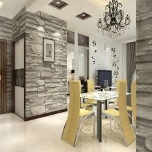 يمكن استخدام ورق الحائط هذا كبديل رائع للحجر الطبيعي في الزخرفة. سيعطون الأصالة الداخلية والسحر الخاص والراحة. إن إمكانيات التقنيات الحديثة واسعة – اليوم من الممكن تقليد الحجر بدقة بحيث لا يمكن للوهلة الأولى التمييز بين مادة التشطيب والمادة الطبيعية..