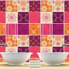 - لا تختر ملصقات داكنة جدًا ومشبعة للبلاط الساطع بالفعل ، حيث يمكن أن يضيع النمط الرئيسي في مثل هذه الخلفية. من الأفضل اختيار شيء مغاير هنا..