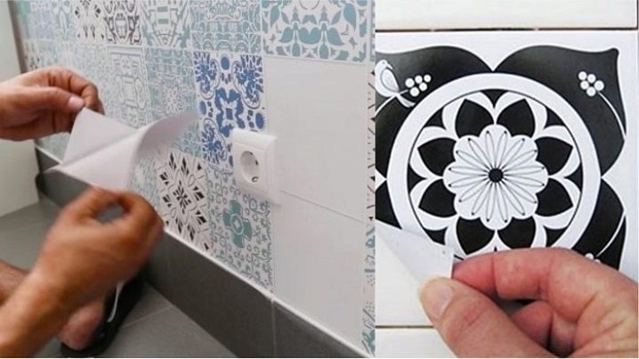 على الإنترنت ، يمكنك العثور على الكثير من الأفكار لتزيين البلاط بملصقات زخرفية.