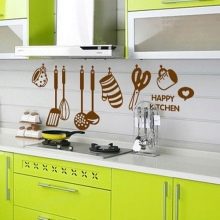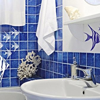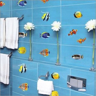 بمساعدة الملصقات الزخرفية ، يمكنك إحياء الكثير من الأفكار الأصلية.. أكثر السمات شيوعًا للحمامات والمطابخ هي الخيارات التالية: