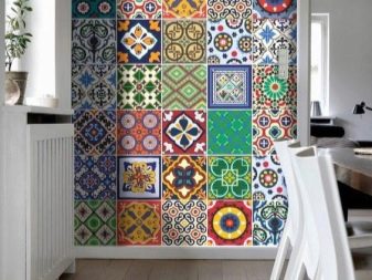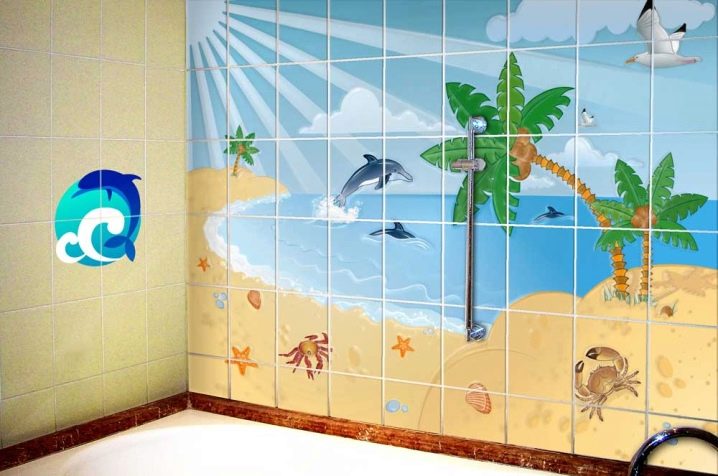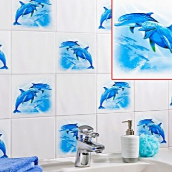 من بين التشكيلة الواسعة ، يمكنك بسهولة العثور على ملصقات تحتوي على صور زهور وحيوانات ومناظر طبيعية متنوعة وأشكال تجريدية وغير ذلك الكثير. في كثير من الأحيان ، يمكنك عمل صورة معينة لطلبها ثم لصقها على البلاط في الغرفة المطلوبة..