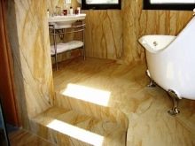 هذا الخيار مناسب تمامًا لتزيين الحمام. قبل اللصق ، يمكن معالجة السطح بمركب خاص مضاد للفطريات. تعتبر الأحجام الشائعة هي القوالب بمعلمات 210 × 50 ، 200 × 300 ، 600 × 300 ، 800 × 400 مم. الحجر المرن مناسب تمامًا لتغطية الأرضيات ، فهذه المنتجات متوافقة مع نظام “الأرضية الدافئة”.