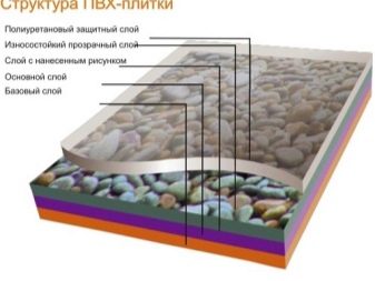 تحتوي الطبقة الأولى على البولي فينيل كلورايد ، وهي تعمل كدعم. والثاني يحتوي على رقائق من الألياف الزجاجية والبلاستيك. الطبقة التالية لها حمولة زخرفية ، والنمط موجود عليها. الطبقة الأخيرة مغطاة بطبقة من البولي يوريثين للحماية.