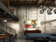 - القوام الصناعي – هذا أسلوب كلاسيكي لهذا النمط ، حيث بدأ الدور العلوي من تصميم المباني المهجورة وغير الضرورية: المستودعات والمصانع والمصانع الكبيرة. في البداية ، تم تحويلها إلى مباني مكاتب وورش عمل مختلفة ، وبعد ذلك بدأ استخدامها كأماكن للمعيشة. تظهر أنواع جديدة من البلاط باستمرار في سوق مواد البناء ، والتي تقلد المواد الصناعية تمامًا وتتيح لك إنشاء تصميمات فريدة لجميع أنواع المباني..