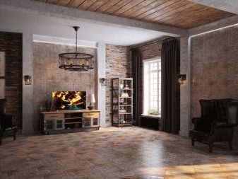 - أسطح خشبية قف على مستوى مع البناء بالطوب ، إذا تحدثنا عن المكونات الرئيسية للأسلوب. إنها تتلاءم تمامًا مع الداخل ، وتضيف الضوء والدفء ، وتعوض قليلاً عن نقص الراحة وتنعيم الحدود الواضحة والصعبة. يمكن استخدام البلاط ، على عكس الخشب الطبيعي ، ليس فقط في المباني السكنية ، ولكن أيضًا في الغرف ذات الرطوبة العالية. إنه يكرر تمامًا تشطيب الخشب مع العديد من الشقوق والتآكل المميز ونمط خاص..