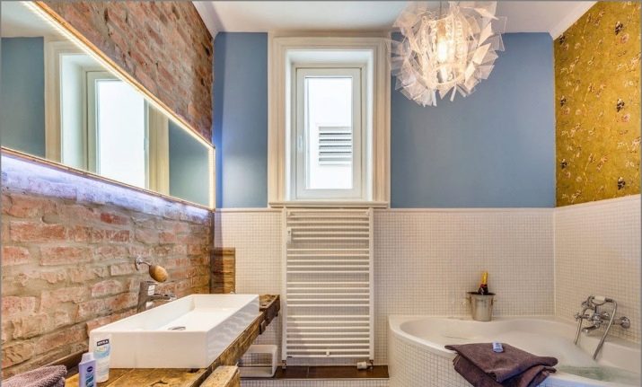 يتضمن الحمام استخدام البلاط حصريًا ، ولكن ليس من نوع واحد ، ولكن مع مجموعة متنوعة من القوام والأشكال. الفسيفساء مناسبة لإنهاء كامل سطح الجدران وكعنصر مشرق. غالبًا ما تكون لوحة الألوان للغرف ذات الإضاءة الطبيعية الجيدة باردة ، على سبيل المثال ، يتم استخدام اللون الأزرق بشكل نشط. في حالات أخرى ، يتم استكمال التصميم الداخلي بعناصر زخرفية بألوان دافئة. يجب اختيار المجموعة بعناية فائقة.
