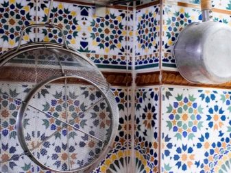يُطلق على الكسوة الخزفية على الطراز المغربي اسم zullage أو zelidge ، كما يقول الأوروبيون. هذه عناصر صغيرة في شكل مربعات ، معينات ، نجوم ، مستطيلات. يصنع الحرفيون الحقيقيون بلاطًا مغربيًا حقيقيًا يدويًا ، ويضعون طلاءًا لامعًا خاصًا في النهاية. من هذه الأجزاء ، يمكنك إنشاء زخرفة فسيفساء فريدة حقًا ، واختيار عناصر من مختلف الألوان والأشكال والأحجام.. لا توجد شرائع داخل النمط نفسه ، يمكن للجميع إنشاء ديكور حسب تقديرهم الخاص.