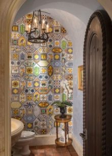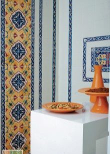 السيراميك هو السمة المميزة لهذا النمط. يتم تنفيذه بنجاح في الكسوة المكسوة بالبلاط.. على الطراز المغربي ، البلاط ليس مناسبًا فحسب ، بل يكاد يكون السمة الرئيسية لتزيين المساحة.. في الوقت نفسه ، تتماشى بشكل جيد مع المواد المواجهة الأخرى ، بما في ذلك ورق الحائط..