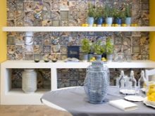 تضفي هياكل الفسيفساء الصغيرة الحجم تأثير المنظور على الداخل ، كما أن الجمع بين الهندسة الصارمة والزخارف المزخرفة يعد خيارًا يربح فيه الجميع لتزيين شقة تحتاج إلى توسيع مرئي للمبنى..