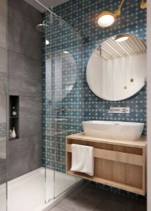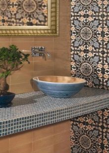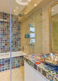 في الحمام ، يتم دمج هذه المواد بشكل مثالي مع المرايا الكبيرة. في مثل هذه الغرف ، غالبًا ما يتم وضع بلاطات مربعة صغيرة جدًا ، مما يخلق نمط فسيفساء شرقي نموذجي من الأجزاء الفردية. الأماكن الجيدة لاستخدام مثل هذا البلاط في الحمام هي المناطق القريبة من الحوض ، على الحائط المقابل للباب الأمامي ، على الأرض ، حول المحيط.