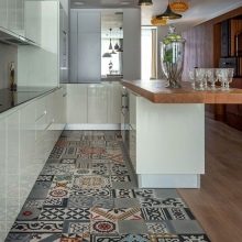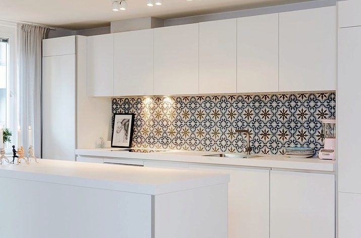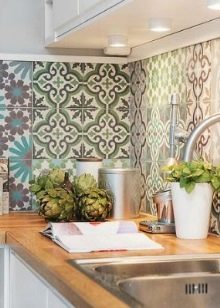 كقاعدة عامة ، في المطبخ ، يتم تجانب البلاط بهذا النمط على الأرض ومئزر منطقة العمل.. الشرط الرئيسي للمادة هو أنه يجب أن تتمتع بمقاومة التآكل والقوة.. لا تستخدم ألوانًا فاتحة جدًا في الزخرفة ، فهي غير عملية. تبدو البلاط المغربي باللونين الأسود والأزرق الغامق غير عادي ومثير للاهتمام في داخل المطبخ ، من العناصر التي تخلق فسيفساء مع إضافة شظايا خفيفة..