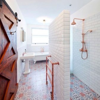 حتى لا تفرط في المساحة ، يمكنك استخدام البلاط ذي التصميم الغريب وكتقليد لـ “الجنة” ، مع إبراز مناطق منفصلة.