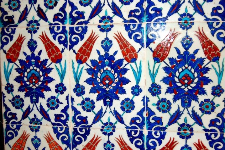 بعض البلاط يفيض بالزخارف الشرقية ويسبب إجهاد العين. لهذا السبب غالبًا ما يتم استخدام مثل هذه الخزفيات كديكور لمنطقة معينة ، ويتم تركيب المنطقة الرئيسية من لون واحد بلون متناغم وبنمط غير معقد من البلاط.
