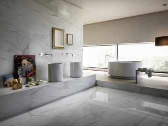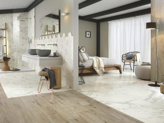 - بلاط الرخام. بفضل التقنيات العالية وأحدث التطورات ، تعلم المصنعون تقليد أنماط الحجر الطبيعي على بلاط السيراميك. والنتيجة هي تشطيب جميل مع “خطوط رخامية” ذات مظهر طبيعي بألوان مختلفة ، ولكنها أرق وأسهل في التركيب والصيانة وأقل تكلفة بشكل ملحوظ. ومع ذلك ، إذا اخترت منتجات من علامات تجارية مشهورة ، فقد تكون الأسعار مرتفعة للغاية..