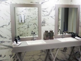 - الرخام الطبيعي أو تقليده لا يسمح للأثاث بالتكتل في الغرفة. يجب أن تكون الزخرفة مرئية بوضوح ، وإلا ستبدو الغرفة مزدحمة ومثقلة وقذرة..