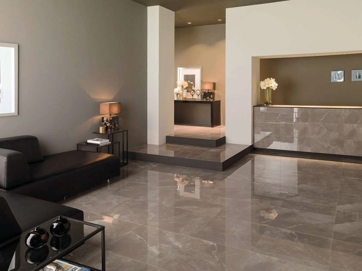 - بلاط لامع. يتم صقل المنتجات المصنوعة من الرخام الطبيعي للحصول على سطح أملس ومتساوي تمامًا مع لمعان لامع وانعكاسية عالية. هذه الجودة مفيدة جدًا للديكور الداخلي ، لأن مثل هذه البلاط تبدو مذهلة ومكلفة بسبب اللعب بالضوء. ومع ذلك ، فإن السطح الذي يبدو خاليًا من العيوب يمكن أن يكون زلقًا جدًا عند تعرضه للرطوبة ، لذلك لا يُفضل استخدام هذا النوع من البلاط لتزيين الأرضيات..