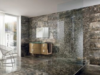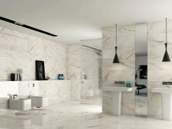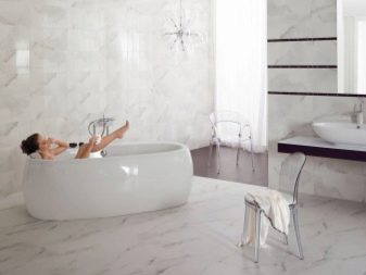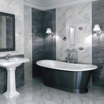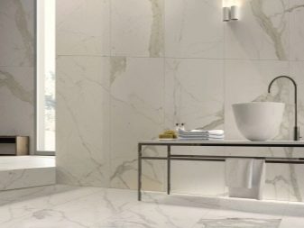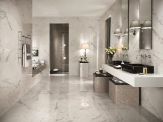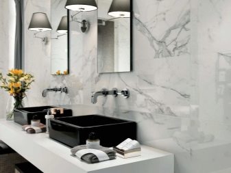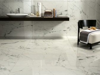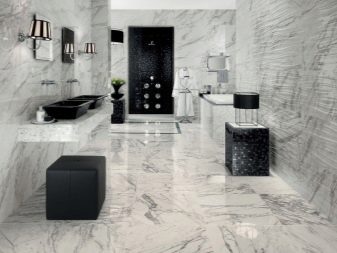 - بلاط الرخام. بفضل التقنيات العالية وأحدث التطورات ، تعلم المصنعون تقليد أنماط الحجر الطبيعي على بلاط السيراميك. والنتيجة هي تشطيب جميل مع “خطوط رخامية” ذات مظهر طبيعي بألوان مختلفة ، ولكنها أرق وأسهل في التركيب والصيانة وأقل تكلفة بشكل ملحوظ. ومع ذلك ، إذا اخترت منتجات من علامات تجارية مشهورة ، فقد تكون الأسعار مرتفعة للغاية..