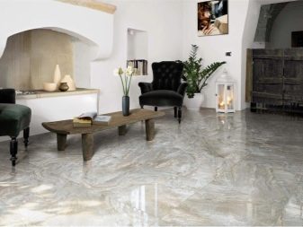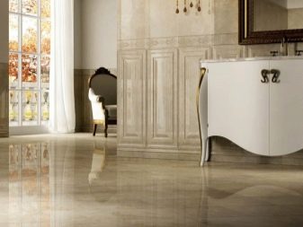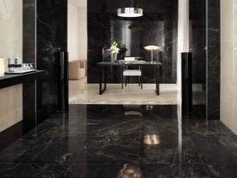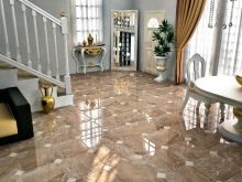 - بلاط لامع. يتم صقل المنتجات المصنوعة من الرخام الطبيعي للحصول على سطح أملس ومتساوي تمامًا مع لمعان لامع وانعكاسية عالية. هذه الجودة مفيدة جدًا للديكور الداخلي ، لأن مثل هذه البلاط تبدو مذهلة ومكلفة بسبب اللعب بالضوء. ومع ذلك ، فإن السطح الذي يبدو خاليًا من العيوب يمكن أن يكون زلقًا جدًا عند تعرضه للرطوبة ، لذلك لا يُفضل استخدام هذا النوع من البلاط لتزيين الأرضيات..