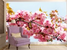- يمكنك إبراز جدار غرفة المعيشة من خلال الجمع بين ورق الحائط الفاتح العادي والتباين في درجات اللون الرمادي مع نمط من فروع ساكورا وطيور الجنة ، ووضع نمط لوني على جانبي مدخل جدار واحد (لإضافة البهجة إلى الجو ، أنت بحاجة إلى إضافة أثاث بألوان بنية ورملية ، وسجاد مع زخارف ووسائد زخرفية متعددة الألوان باللون الفيروزي والأبيض والظلال الوردية الباهتة) ؛