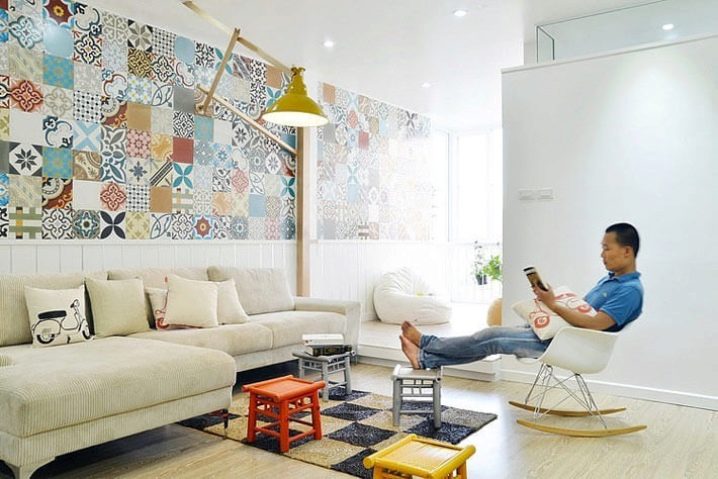 هذه التقنية تعني إبراز أحد جدران القاعة بروح الترقيع. للقيام بذلك ، يكتسبون لوحات قماشية مشرقة ومتناقضة بنمط ، تتداخل ظلالها مع بعضها البعض. بعد قطع ورق الحائط إلى مربعات أو مستطيلات صغيرة ، يتم لصقها على الحائط أو ملء اللكنة أو لصق الجدار بالكامل وفقًا لمبدأ البناء الكلاسيكي أو المائل بالبلاط. تم تزيين الطائرات المتبقية بورق حائط عادي لتنعيم التصميم الجذاب..