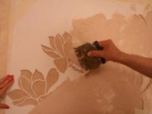 الطريقة الثالثة للتزيين بورق الجدران السائل ليست أكثر من ملء كل جزء من النموذج المطبق مسبقًا على الحائط. يتم إجراء الاستقبال باستخدام ملعقة مع تقليم حواف منطقة التباين في نفس الوقت ، ومن غير المقبول ملء المناطق القريبة من النموذج ، لأنه في هذه الحالة قد يتغير النمط ويصعب تحقيق خطوط معبرة.