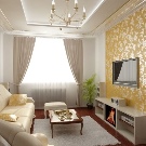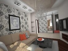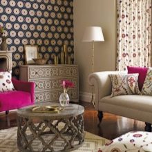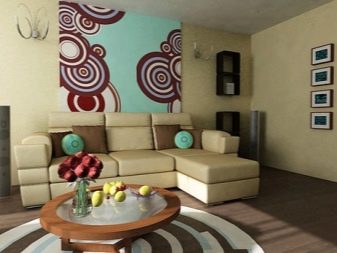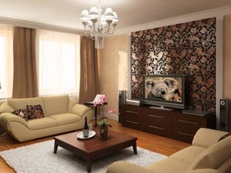 بالنسبة لغرفة المعيشة الصغيرة ، فإن ورق الحائط بنمط متوسط الحجم أفضل. إنه لأمر جيد إذا لم يكن الرسم واضحًا: الخطوط ، الموجات ، الطباعة الحريرية هي أفضل التقنيات لتزيين مساحة صغيرة. يمكن القيام بذلك أيضًا عن طريق الملمس: غالبًا ما يكون لها تأثير أفضل من الزهور الضخمة أو الزخرفة الوطنية..