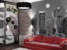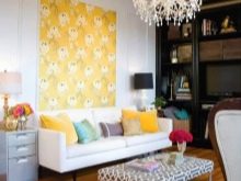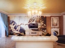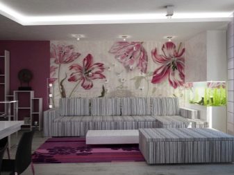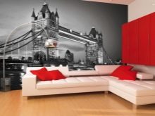 - لا يقتصر على موضوع الطباعة ، والذي يسمح لك باستخدام ورق الحائط كعنصر لتزيين المساحة ، والتي من خلالها يمكنك جلب الفردية والجو المطلوب إلى القاعة ؛