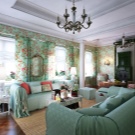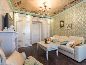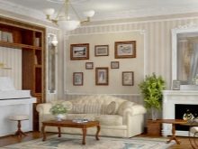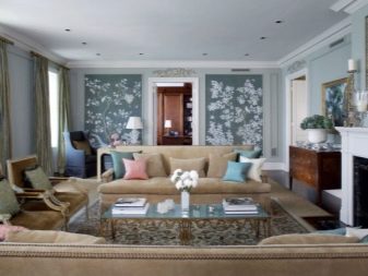 أحد الاتجاهات غير العادية ، وهو تقليد لحالة الماضي ، يجعل من الممكن للجميع أن يختاروا لأنفسهم في أي وقت في التاريخ. يتم استبعاد المواد التي تزخر باللمعان هنا ، يمكنك استخدام ورق حائط عادي أو أصناف مختلفة للرسم. يجب ألا تزين جدران القاعة بلوحات قماشية بنمط متنوع: يشير النمط إلى وفرة من ملحقات الأثاث ، وبالتالي فإن تجاوزات المطبوعات غير مقبولة.