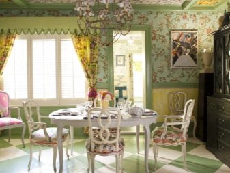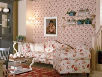 في الواقع ، يشبه الطراز الكلاسيكي الكلاسيكية ، التي أضافت ملاحظات ريترو وبروفانس ، لكنها مرتبطة بعصر معين. بالإضافة إلى اللوحات أحادية اللون ، يُسمح بطباعة على شكل شريط ، ونمط زهري بسيط ، ونسيج للجص الزخرفي.