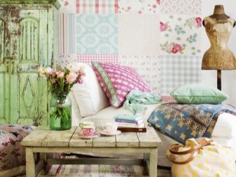 تتضمن هذه التقنية إبراز أحد جدران القاعة بروح الترقيع. للقيام بذلك ، يكتسبون لوحات قماشية مشرقة ومتناقضة بنمط ، تتداخل ظلالها مع بعضها البعض. بعد قطع ورق الحائط إلى مربعات أو مستطيلات صغيرة ، يتم لصقها على الحائط أو ملء اللكنة أو لصق الجدار بالكامل وفقًا لمبدأ البناء الكلاسيكي أو المائل بالبلاط. تم تزيين الطائرات المتبقية بورق حائط عادي لتنعيم التصميم الجذاب..
