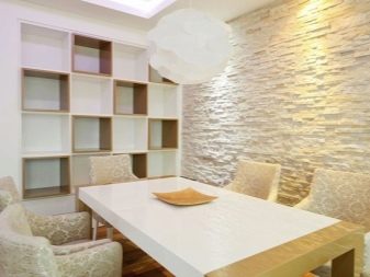 واحدة من أكثر التقنيات إثارة للاهتمام للجمع بين ورق الحائط هو مبدأ الجمع بينها وبين اللاميلا البلاستيكية أو المصفحة أو الطوب أو الجدران الحجرية.. في هذه الحالة ، يعتمد اللصق على ميزات تصميم مواد البناء: