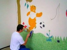 يتيح لك تفرد هذه المادة عمل أنماط مختلفة على سطح مخملي مقاوم لأشعة الشمس. في الوقت نفسه ، يمكنك استخدام إضافات مختلفة ، مع استكمال كتلة ورق الحائط بها. من بين الرفقاء الأكثر شعبية للخليط ، هناك طلب خاص على عرق اللؤلؤ ، ورقائق الرخام ، بريق الميكا ، القطيع الملون ، اللمعان.. يتم تنفيذ هذه التقنية بثلاث طرق: