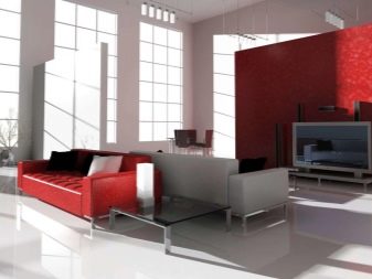 الأسلوب يعني استخدام مواد تكنولوجية جديدة في الزخرفة. ورق الحائط السائل مناسب هنا بالاقتران مع الطلاءات من النوع الرقائقي ، والألواح ثلاثية الأبعاد مع تقليم من الجلد المريح. التباين الواضح أمر لا غنى عنه: يجب أن يكون لون الحوائط مختلفاً مع إبراز أي سمات تصميمية للغرفة من خلال اللون أو الإضاءة الاصطناعية. يتم استبعاد ظلال ألوان الباستيل: الأسلوب يفرض السطوع والإبداع ، ومع ذلك ، لا يمكن اعتباره مكتملًا بدون لهجات دلالية وأسلوب.