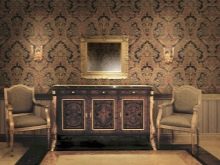 يجب أن يتجسد أسلوب القصر ، الذي أصبح عصريًا في عهد نابليون انتصار وانتصار. لا يمكن أن تحتوي على ورق حائط: باهظ الثمن ، بما في ذلك زخرفة الجدران النسيجية ، والرسم الفني ، وتقنيات الجمع بين ورق الحائط وفقًا لمبدأ اللوحة ، مرحب بها. للديكور أهمية خاصة: يجب أن تكون اللوحات الفنية مبهجة ، ودائمًا مع التذهيب أو الفضة أو الظل البرونزي. ورق الحائط الذي يحتوي على طباعة حريرية ، ومواد منسوجة بألوان زاهية (بورجوندي ، ونبيذ ، وأزرق ، وظلال برونزية ، ومزيج من الأبيض والذهبي) سوف تتناسب بشكل مثالي مع النمط.