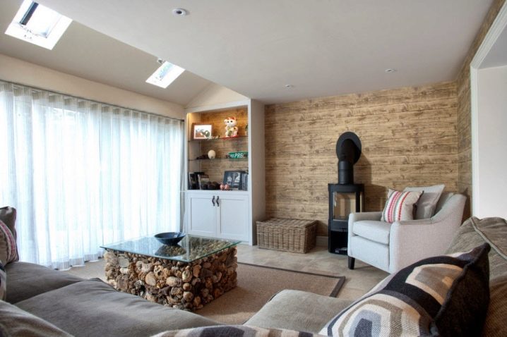 يُسمح بنوع من الوحدة من الازدهار والاقتضاب في نوع واسع من الغرف ، يستحم في الشمس. في غرفة المعيشة هذه ، يكون ورق الحائط مع تقليد البناء بالطوب أو السبورة الطبيعية مناسبًا. نسيج من ورق الحائط العادي أو الملون يجب أن تكون طبيعية وخشنة بشكل متعمد وتقليد الطحن المتهور وبساطة وعري الجدران. في الوقت نفسه ، يمكن تزيينها بورق حائط للصور ، مما يخلق مظهر صورة مشرقة. ظلال لوحة الألوان الخاصة بالنمط هادئة وطبيعية ودافئة في الغالب. عند لصق ورق الحائط المصنوع من الكتان أو الصوف أو ألياف القطن ، يجدر النظر: يتم لصقها على منطقة معينة.