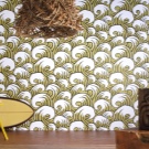 الألوان الشائعة هي جميع أنواع الخطوط المتعرجة والمخططة ، والألوان المفضلة للظلال هي درجات اللون الرمادي والبني والقشدي واللمع المعدني. ورق الحائط ذو النقش الهندسي (طباعة الشاشة الحريرية) مناسب هنا, يلزم وجود ثلاث نغمات أو أكثر في طباعة ورق الحائط والجمع بين اللوحات القماشية والبلاط.