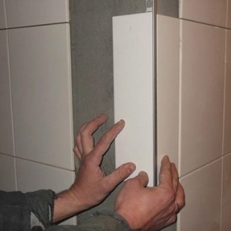 غالبًا ما يتم استخدام الخارج ، مما يجعل نتوءات الجدران عند مواجهة الحمام. استخدامه مهم للغاية ، لأن هذا الجزء من الطلاء يتعرض لضغط ميكانيكي مستمر. إذا أغلقت الأطراف الحادة للبلاط بزاوية ، فسيساعد ذلك في القضاء على الخطر على المالكين. في هذه الحالة ، سيقوم المنتج أيضًا بوظيفة الحماية..