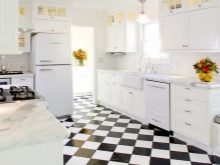 في أغلب الأحيان ، يتم استخدام البلاط المتناقض لتزيين ساحة. الأسود والأبيض مناسب أيضًا للأرضيات. في هذه الحالة ، يجب أن تكون العناصر كبيرة.. إذا كانت مجموعة المطبخ مصنوعة بألوان فاتحة ، فمن الأفضل وضع البلاط على الأرض بنمط رقعة الشطرنج..