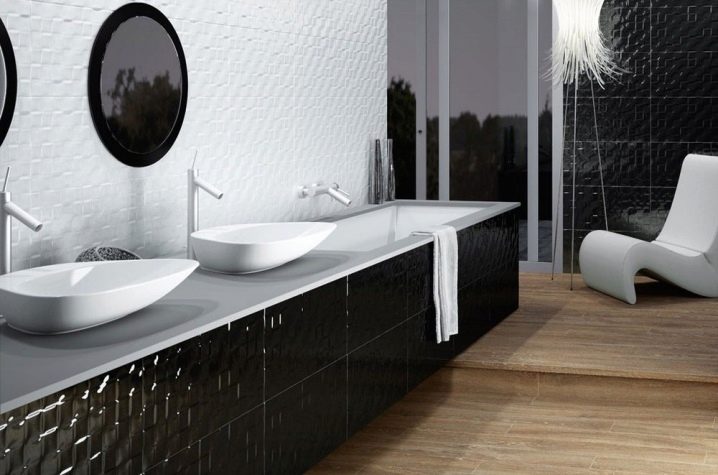 لإضافة لمسة من الفخامة والأناقة إلى الداخل ، يمكنك استخدام البلاط الأسود والأبيض اللامع. سيحب خبراء الاتجاهات الحديثة في التصميم الطلاء بالنقوش.