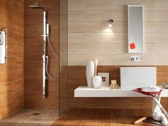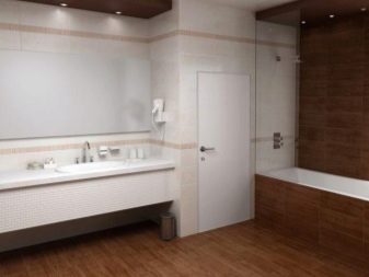 من الأفضل اختيار بلاط بدون حواف., ثم لن تكون هناك طبقات مرئية على الجدران والأرضية. على الرغم من صعوبة تنفيذه ، إلا أن النتيجة التي تم الحصول عليها تستحق الجهد المبذول..