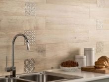 انتبه إلى نمط الخشب: سيوسع الشريط العرضي المساحة بصريًا ، وسيضيق الشريط الطولي ، على العكس من ذلك (ينطبق هذا على البلاط الموضوعة على الأرض). يسمح لك النمط الرأسي على الجدران برفع السقف بصريًا ، والنمط الأفقي – لتوسيع المساحة.