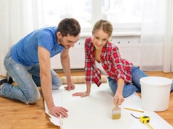 ولكن مع ذلك ، في ظل ظروف معينة ، من الضروري البدء في الإصلاحات بدقة مع تصميم الأرضية. إذا كانت لديك شقة صغيرة أو شقة مشتركة ، أو لا يوجد مرآب لتخزين الأشياء ، فأنت بحاجة إلى ترتيب الأثاث في الغرفة في أسرع وقت ممكن. بعد وضع طبقة الصفيح وفقًا لجميع القواعد والشروط ، ستتمكن من إحضار بعض الأثاث الضخم على الأقل في مكانه., تحريكه حسب الحاجة.