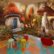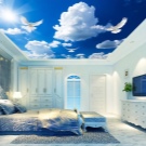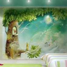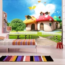 - لخلق جو متكامل في الغرفة للأطفال ، يمكنك اختيار ورق الحائط الحجمي للسقف. سوف تكمل لوحات السقف الصورة وتخلق تأثيرًا فريدًا.