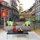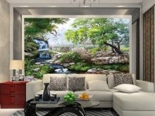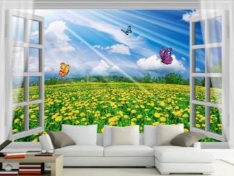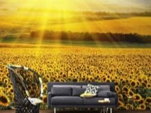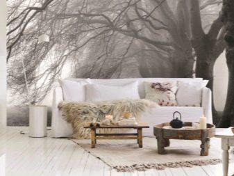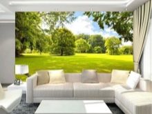 يمكن أن تصبح الصور البانورامية ، حيث توجد منازل ريفية ، وحدائق تنمو فيها الهندباء الرقيقة ، خلفية رائعة لترتيب قطع الأثاث. عند الاسترخاء على الأريكة ، يمكنك الشعور بوجود أجواء الغابة ونضارة الشلال.