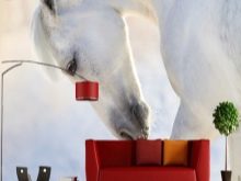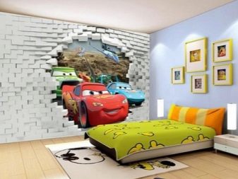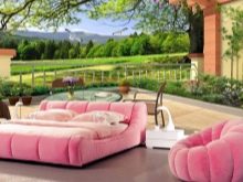 عند اختيار مثل هذه الخلفية ، عليك أن تزن الإيجابيات والسلبيات. فكر على الفور في دمج الصورة ثلاثية الأبعاد مع بقية المفروشات.
