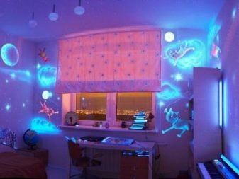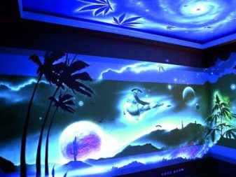 يمكنك استخدام اللوحات الفلورية بدون إضاءة خاصة. حتى في الإضاءة المنخفضة ، يمكنهم إصدار توهج لطيف ، مما يجعل الصورة ثلاثية الأبعاد وواقعية..