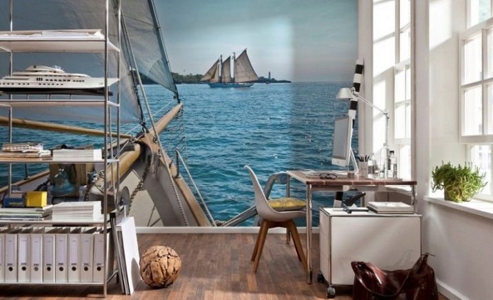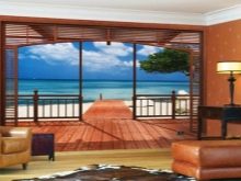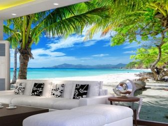 تبدو جيدة في خلفية غرفة المعيشة مجسمة ، والتي تصور كوت دازور ، وكراسي الخيزران ، والأشجار الاستوائية. سوف يستمر غطاء السجاد ، الذي يكرر نظام ألوان الرمال ، في الوهم بأنك على شاطئ البحر. يمكنك خلق جو مريح مع الموسيقى والمشروبات المناسبة..