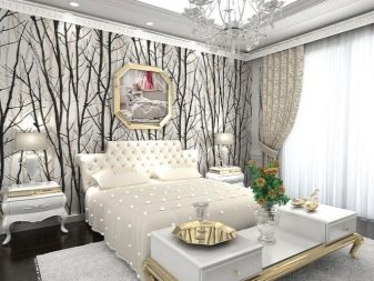 تحتوي خلفيات المرآة أو الحجمي المعدني على مجموعة متنوعة من الظلال.. في الوقت نفسه ، يمكنك اختيار أقمشة معدنية غير لامعة أو منتجات ذات عناصر معدنية منفصلة. سيساعدك الخيار الأخير في إنشاء تصميم كلاسيكي..